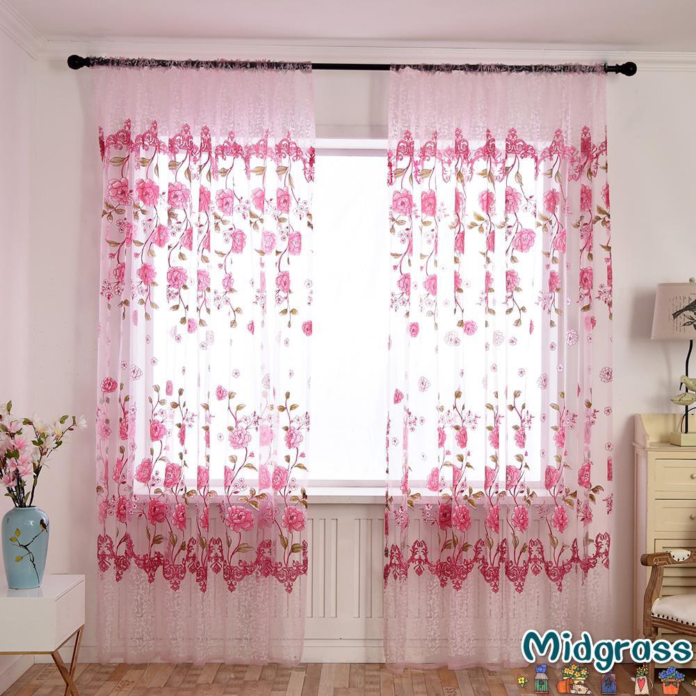 Mr Diy Peony Flower Offset Printing Curtain Yarn Tulle Curtain For Room Home Decor Shopee Singapore